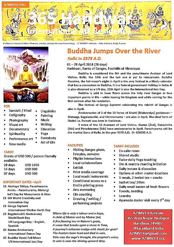 3 more of the 10 Avataars of Lord Vishnu, Kurma (2nd), Narasimha (4th) and Parashurama (6th) have anniversaries in April. Parashurama will be the martial Guru of Kalki, in the year 3378 A.D. Or 428898 A.D.