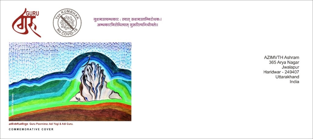 On 24th July 2021, the day of Guru Poornima, AZIMVTH Ashram privately released a set of three spiritual picture postcards and matching covers, a Maxim card and matching commemorative cover, and a pair of hand-made paper covers in Haridwar India.